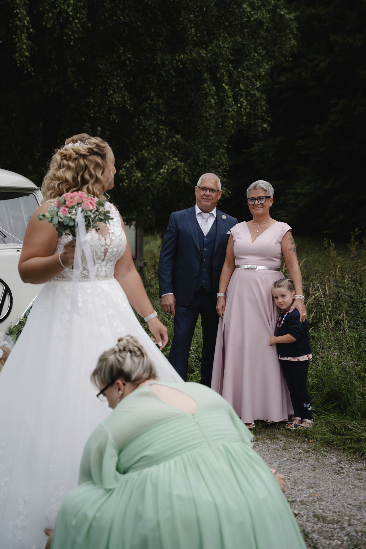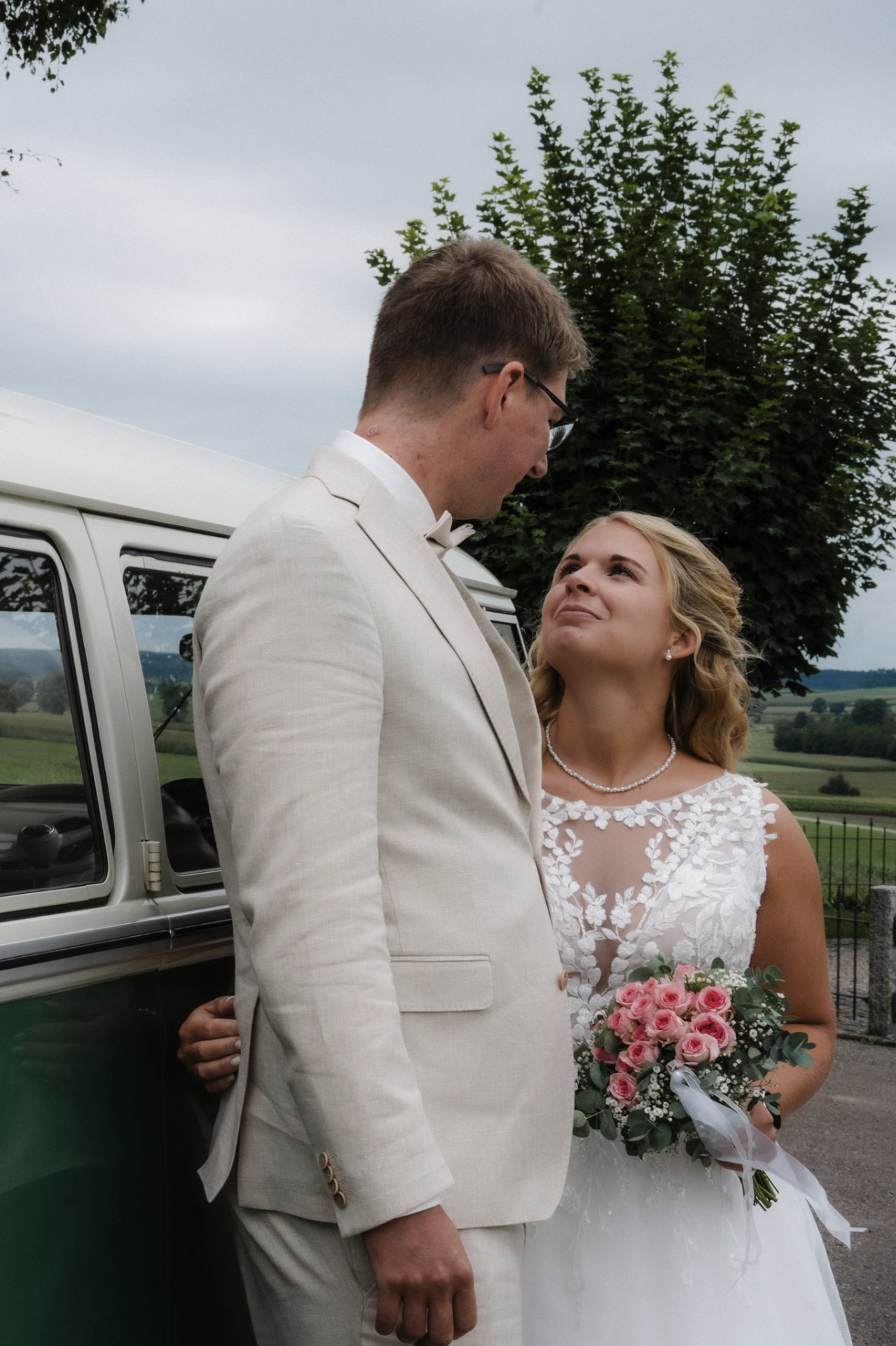 ich bin Theresa und fotografiere unter dem Pseudonym »Fisima Tente«. Seit mehr als 10 Jahren bin ich als Kamerafrau fürs Fernsehen unterwegs, bin mit den Kameras also quasi "groß geworden", da lag der Ausrutscher in die Fotografie nicht allzu fern. Inzwischen fotografiere ich neben meiner filmerischen Arbeit fürs Fernsehen auch Portraits, Unternehmen, Produkte, Familien und natürlich auch Hochzeiten! Meinen Stil würde ich als emotional und nostalgisch bezeichnen, immer ganz natürlich und ästhetisch—manchmal auch ein klein wenig verzaubert und ein bisschen wie ein Wes Anderson Film. Ich arbeite mit Spiegelungen, Schatten und natürlichem Licht, und wenn's auf eurer Hochzeit regnet, freu ich mich ganz besonders. Durch meine jahrelange Erfahrung hab ich auch eine ganze Palette an weiteren Dienstleistern zur Hand, vom Hochzeits-DJ bis hin zum Trauredner. Ab Sommer '26 findet man in meinem Sortiment auch noch einen Oldtimer als Hochzeitsauto, das ich jedem Paar für ihren großen Tag gerne zur Verfügung stelle.